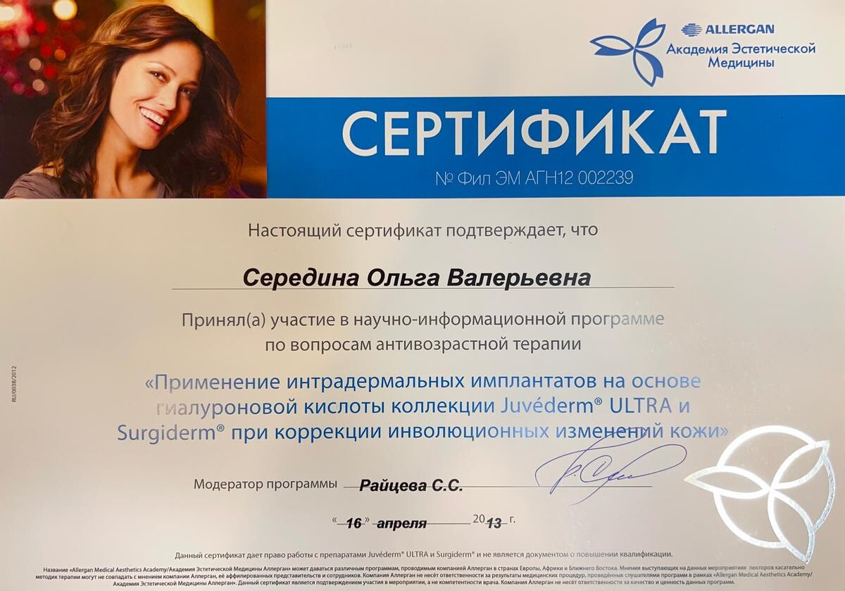 Ольга Середина – врач-косметолог, дерматолог, трихолог и международный сертифицированный тренер по инъекционным и сочетанным методикам
